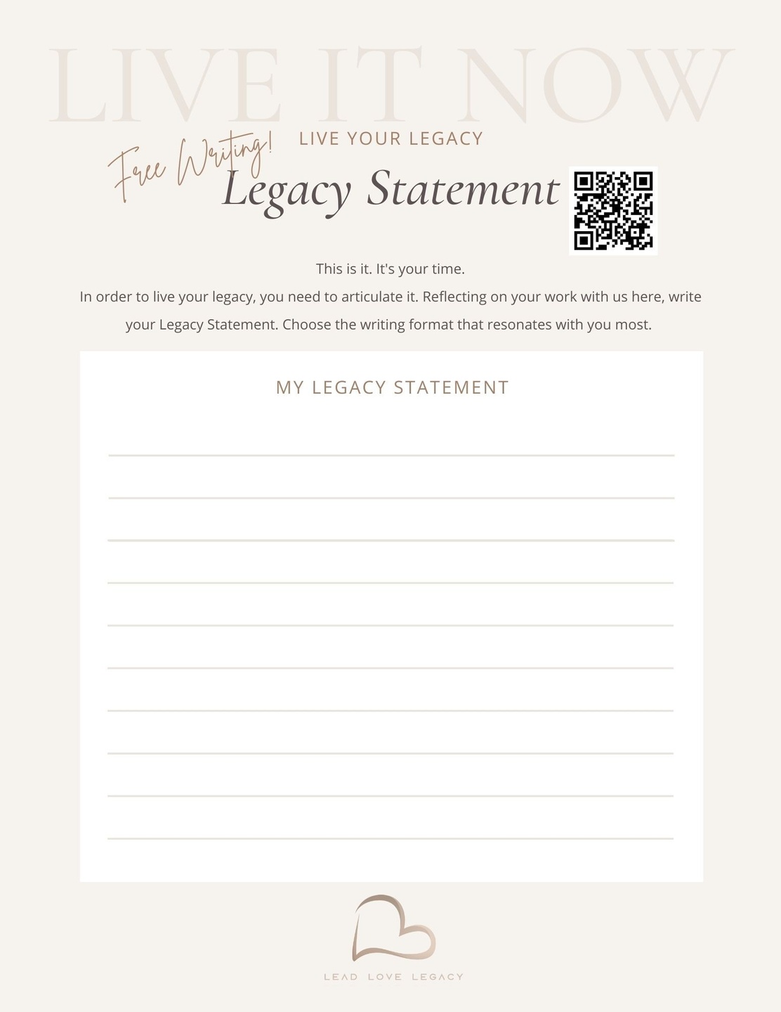 Find your highest purpose and place of peace on your way to your own Legacy Statement.