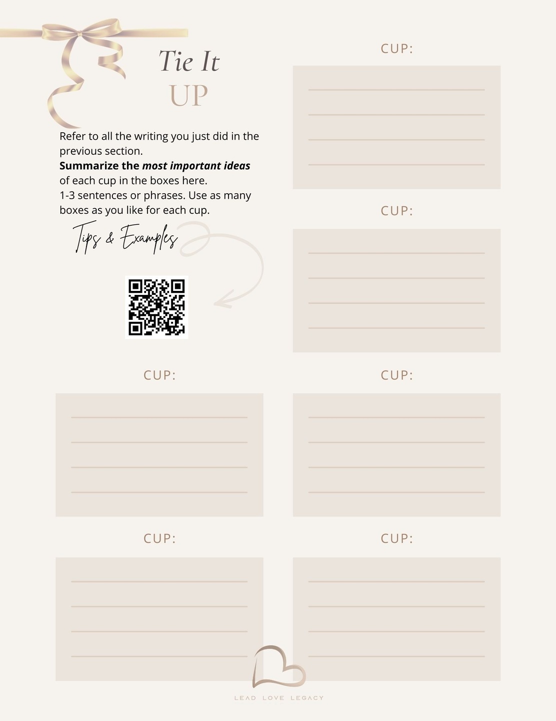 Learn more about your life categories (your cups)... you'll fill your cups and serve from your cups through this work.