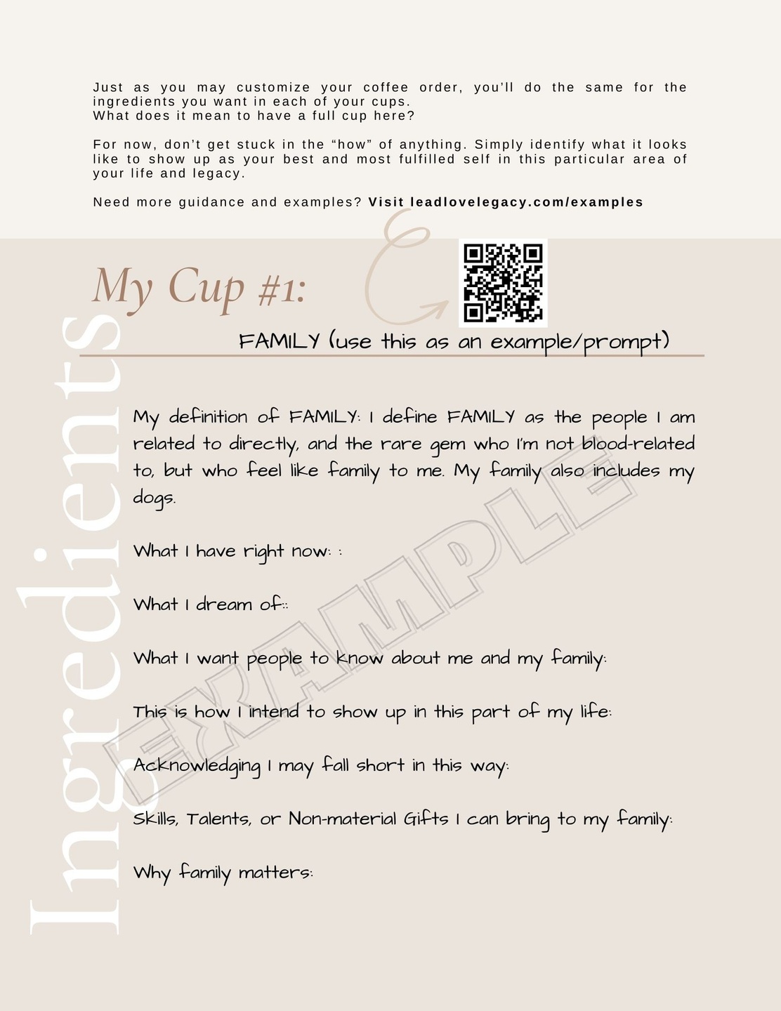 Use this page in connection with Your Legacy Statement workbook exercises. Below are examples and deeper dives into the various exercises from the book that will serve you.